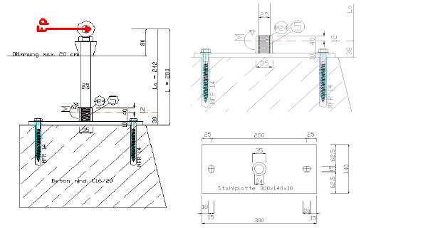Statische Berechnung durch Fa. MEA / Aichach, der Hersteller der zum System FGA gehörenden Dübel